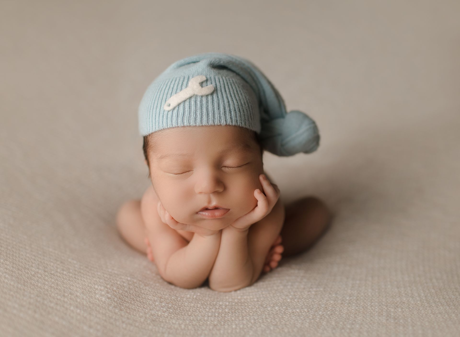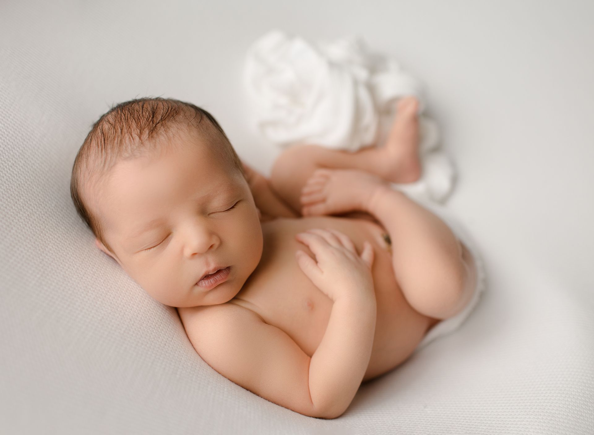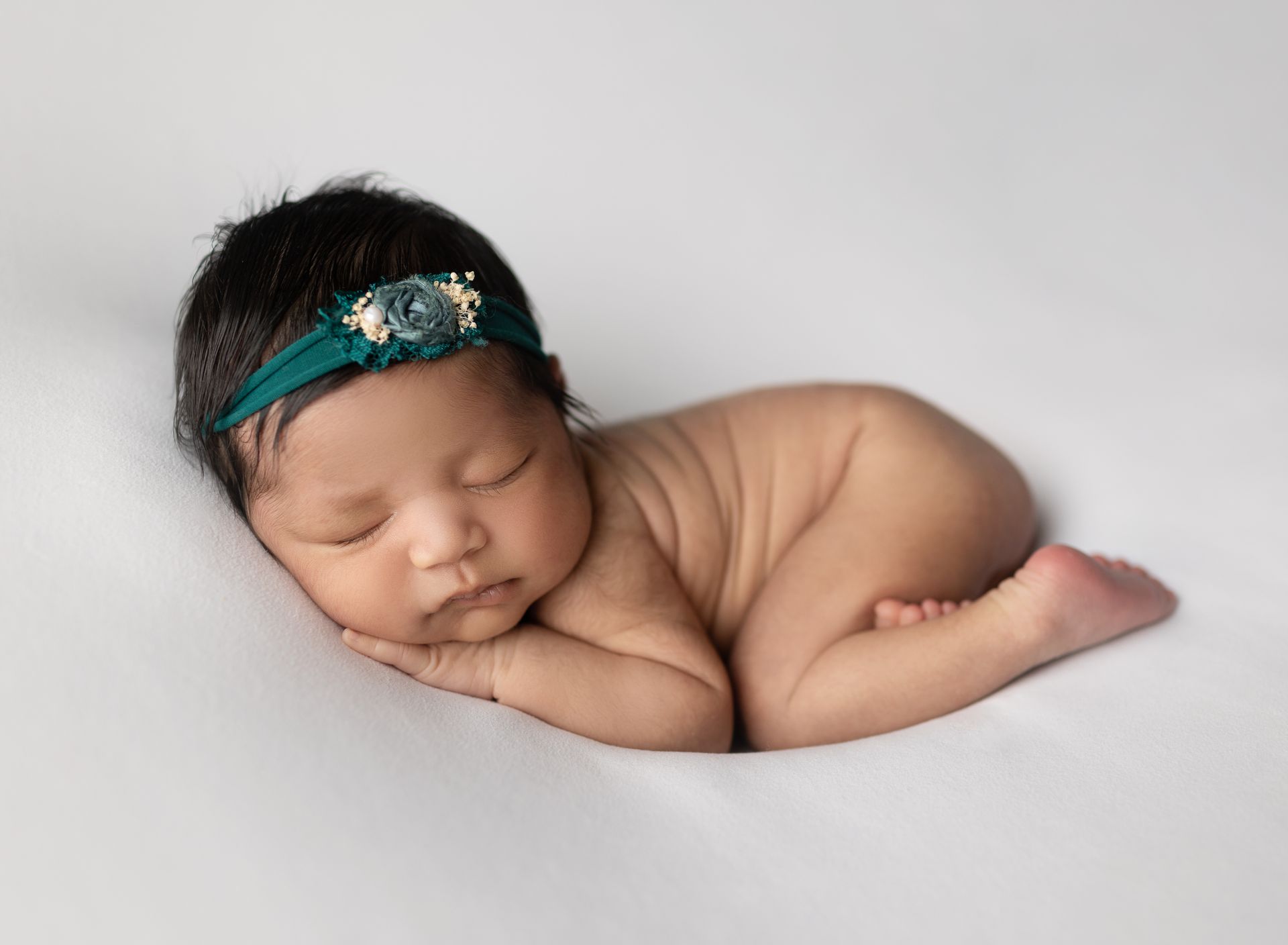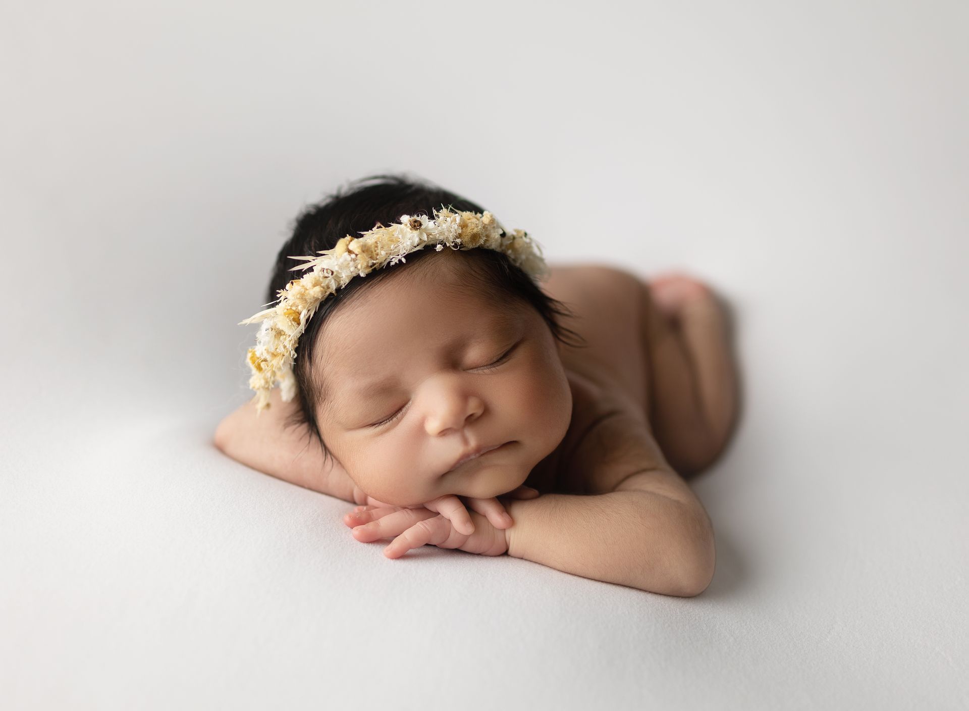 For a seamless newborn photoshoot, we suggest photographing your baby when they are between 14 and 21 days old. During this period, our skilled team can artfully position your little one to highlight their individual charm.